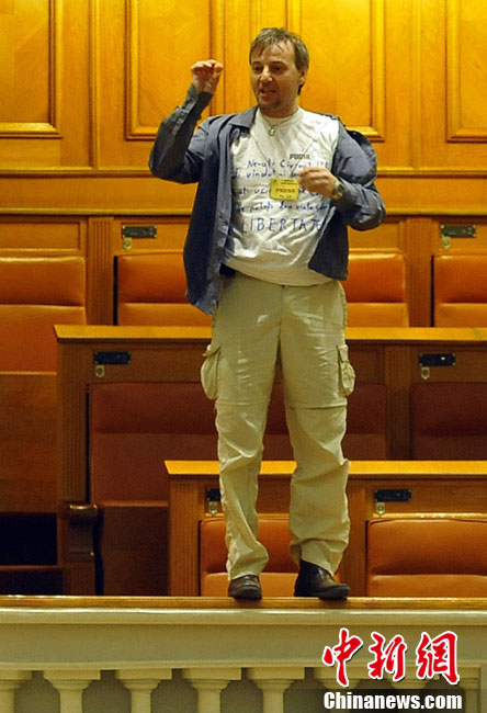 當地時間12月23日,羅馬尼亞一名男子為抗議殘障兒子的社會福利遭刪減,從國會旁觀席的看臺跳下,震驚了總理及在場議員。不過經緊急送醫后,這名男子脫離了生命危險。據悉,這名跳樓男子是電視臺的工程人員。