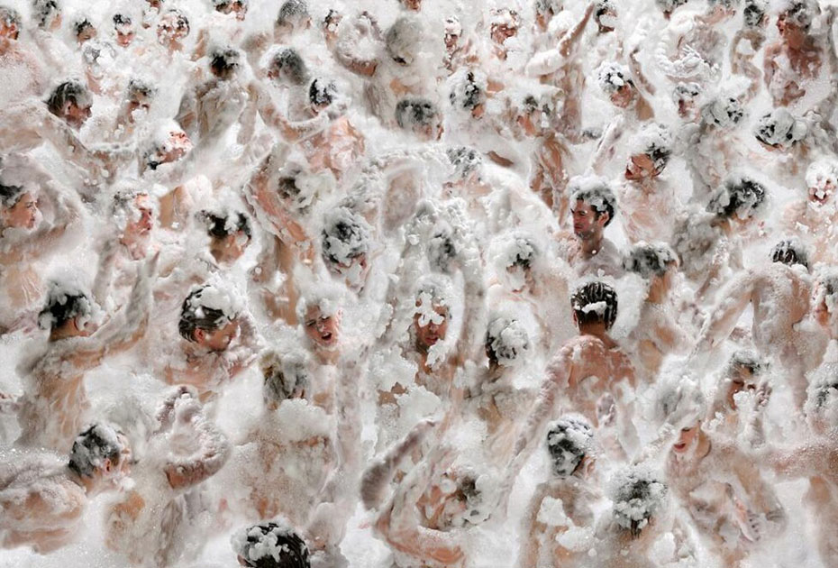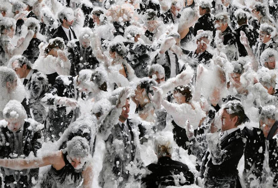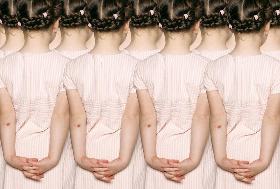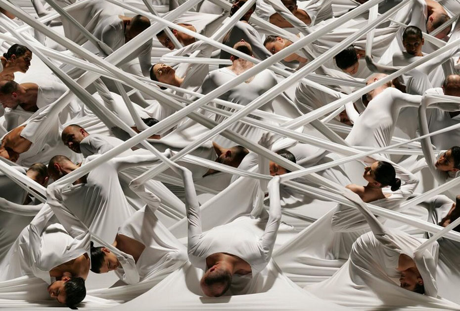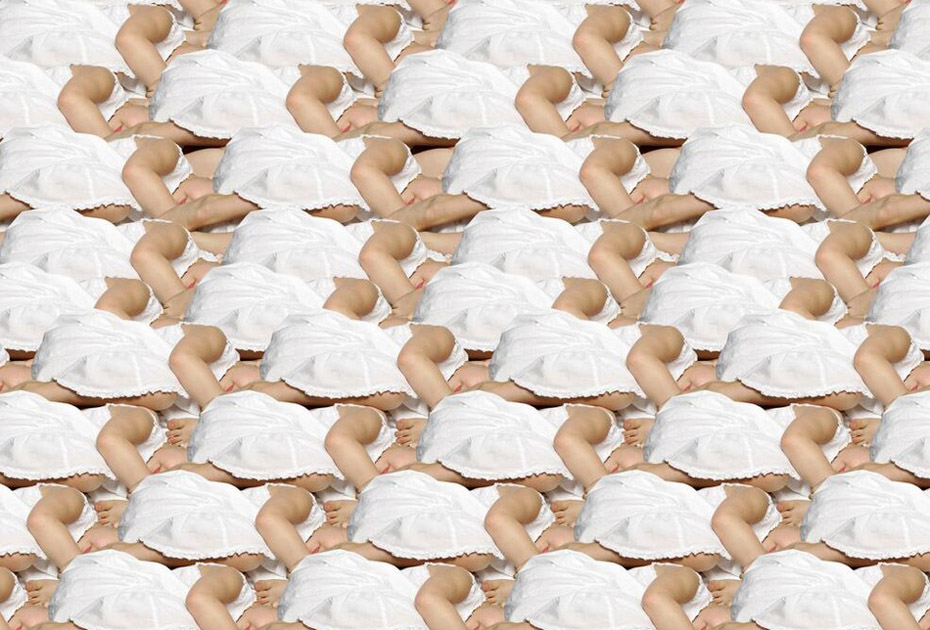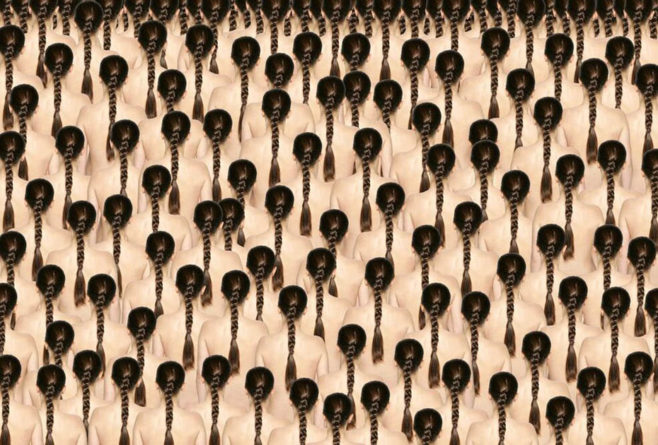 德國藝術家、攝影師Claudia Rogge,他非常癡迷圖案造型,也許你喜歡的圖案是類似于花紋或者墻紙那種,但他卻喜歡用人來組合圖案造型。他的這種癡迷促使他完成這個大手筆的制作:大量的模特擺著相似的姿勢,穿著相同的衣服,組成了稍顯恐怖的人體圖案。不可否認的是,他的部分作品使用了后期特效。