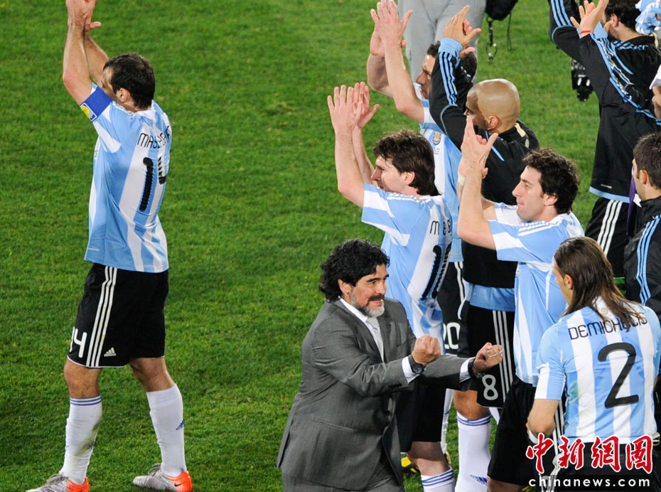 關注馬拉多納,期待梅西,阿根廷隊在南非世界杯上的首演沒有令等待他們的球迷失望,1比0擊敗非洲勁旅尼日利亞隊,“潘帕斯雄鷹”再添奪冠底氣。中新社記者 廖攀 攝