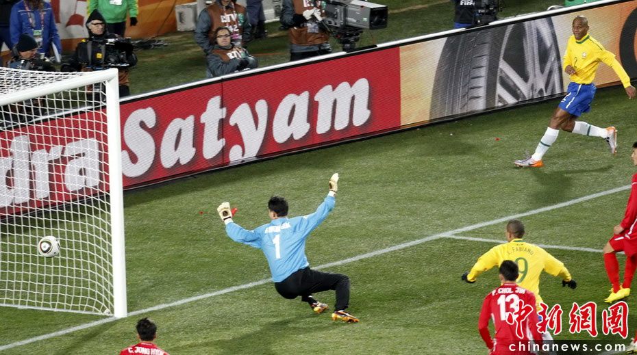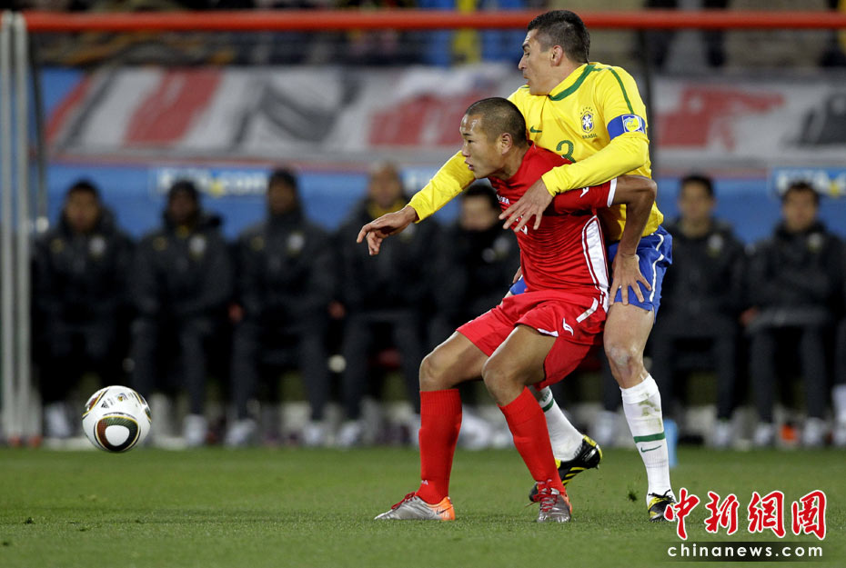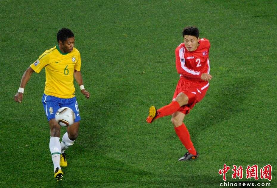 北京時間6月16日凌晨2:30進(jìn)行的一場世界杯小組賽G組的較量中,巴西隊迎來了朝鮮隊。最終經(jīng)過90分鐘激戰(zhàn),巴西隊2-1擊敗朝鮮,贏得南非世界杯開門紅。中新社記者 廖攀 攝