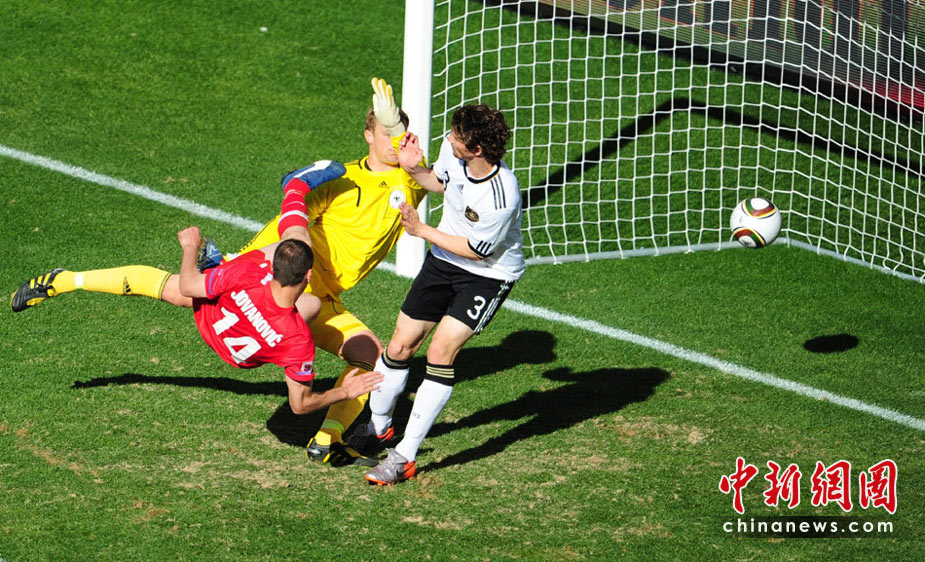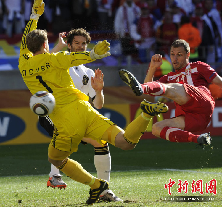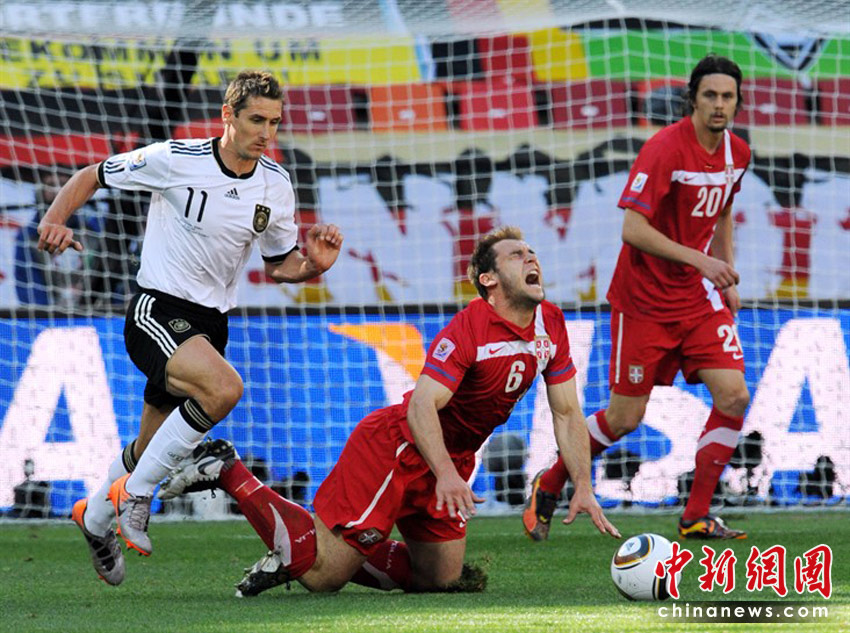 北京時間6月18日晚19:30分,世界杯小組賽D組德國迎戰(zhàn)塞爾維亞。德國前鋒克洛澤累計兩張黃牌被罰下場,比賽38分鐘塞爾維亞隊約萬諾維奇頭球率先破門破門。此后比賽中,德國隊獲得一次點球機會,波多爾斯基主罰,但他罰出的球被塞爾維亞門將斯托伊科維奇撲出。最終塞爾維亞1:0戰(zhàn)勝德國隊。