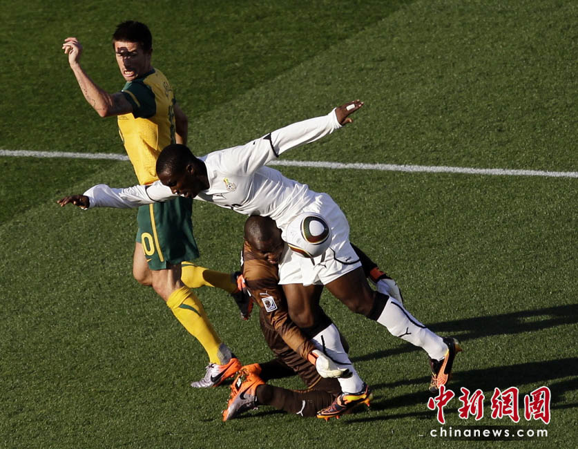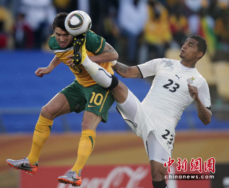 6月19日,世界杯D組第2輪一場小組賽在勒斯騰堡的皇家班佛肯球場展開,加納隊迎戰澳大利亞隊。最終被罰下一人的澳大利亞隊1比1逼平加納。