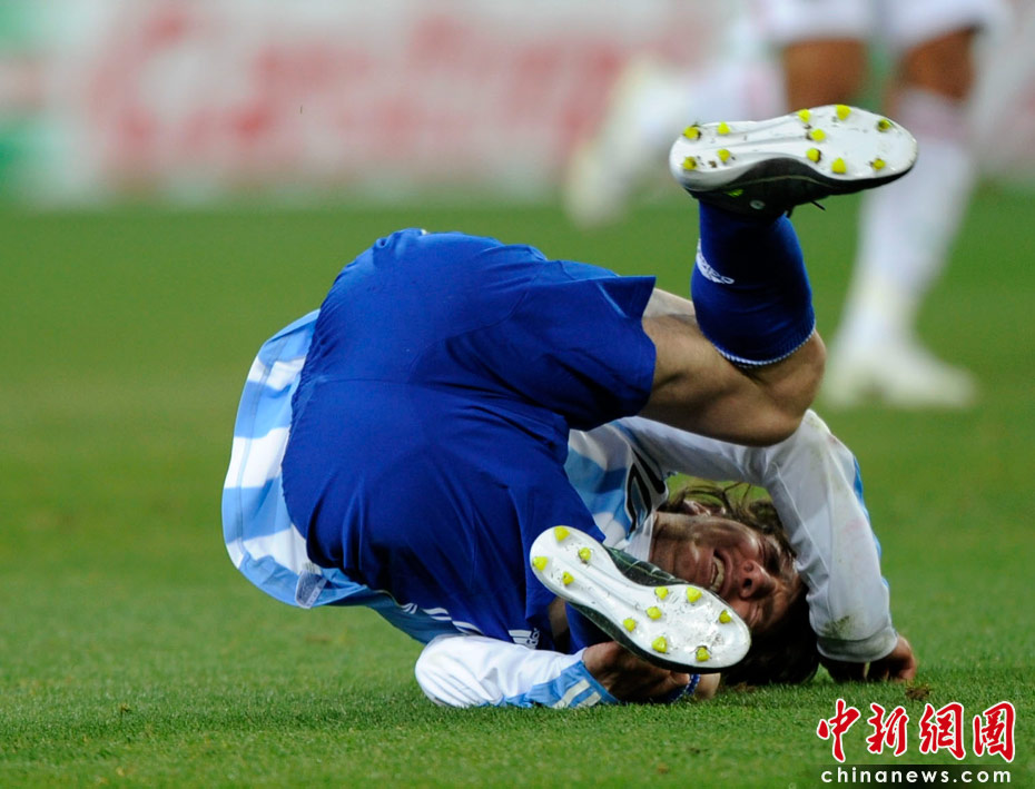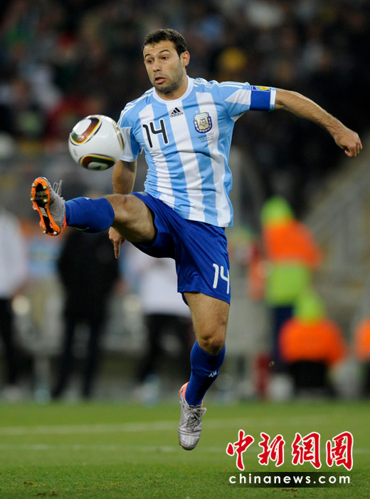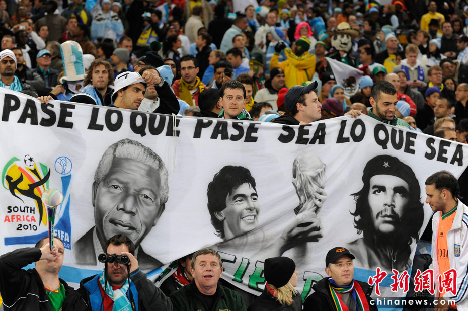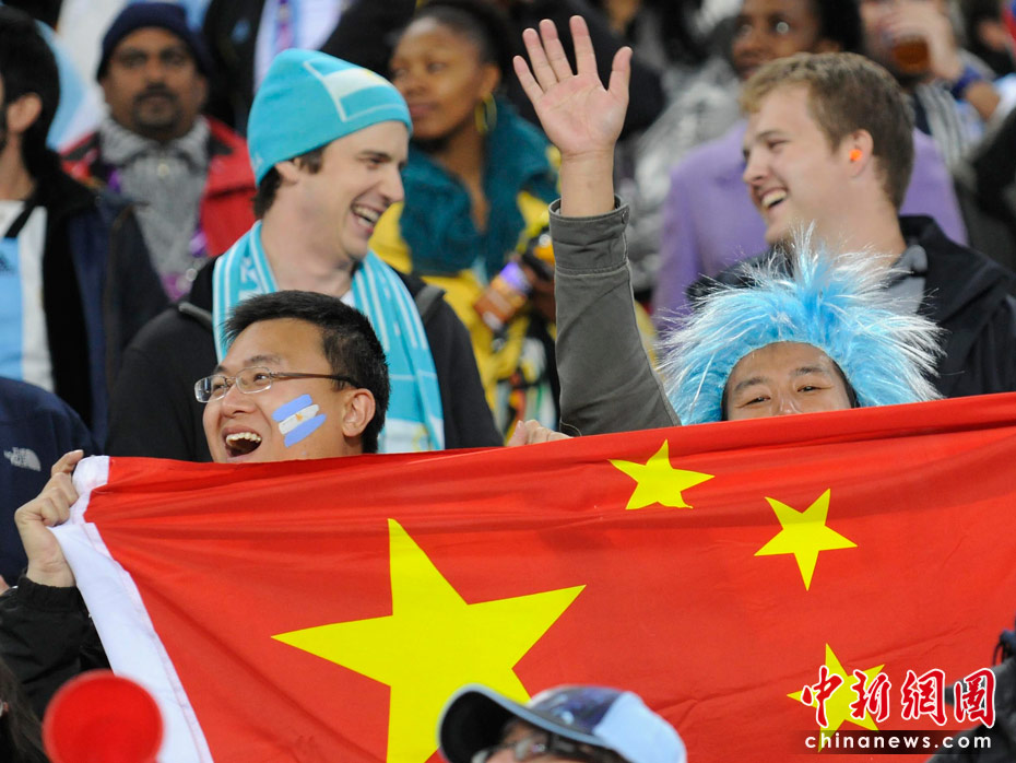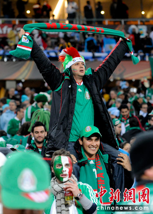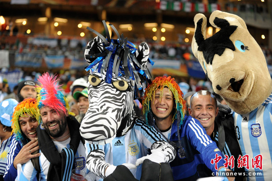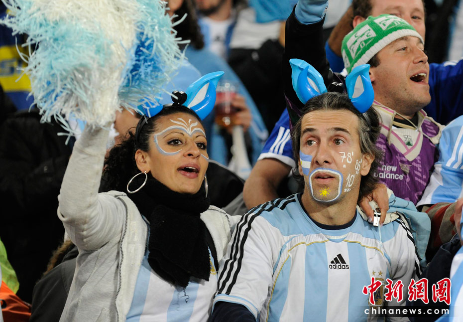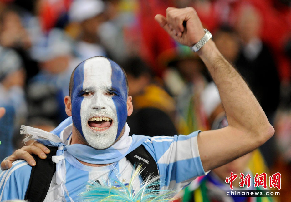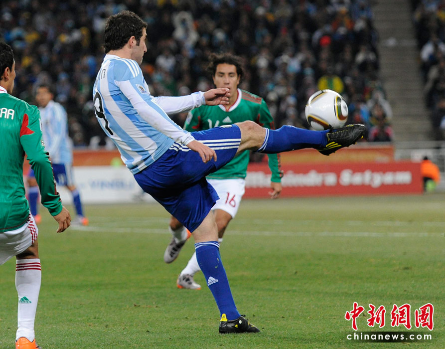 北京時間6月28日凌晨2:30,南非世界杯1/8決賽再賽一場,阿根廷隊在約翰內斯堡的足球城球場迎來了墨西哥隊。憑借特維斯一個明顯越位進球首開紀錄,隨后伊瓜因和特維斯各進一球,以3-1擊敗墨西哥,晉級八強。 中新社記者 廖攀 攝
