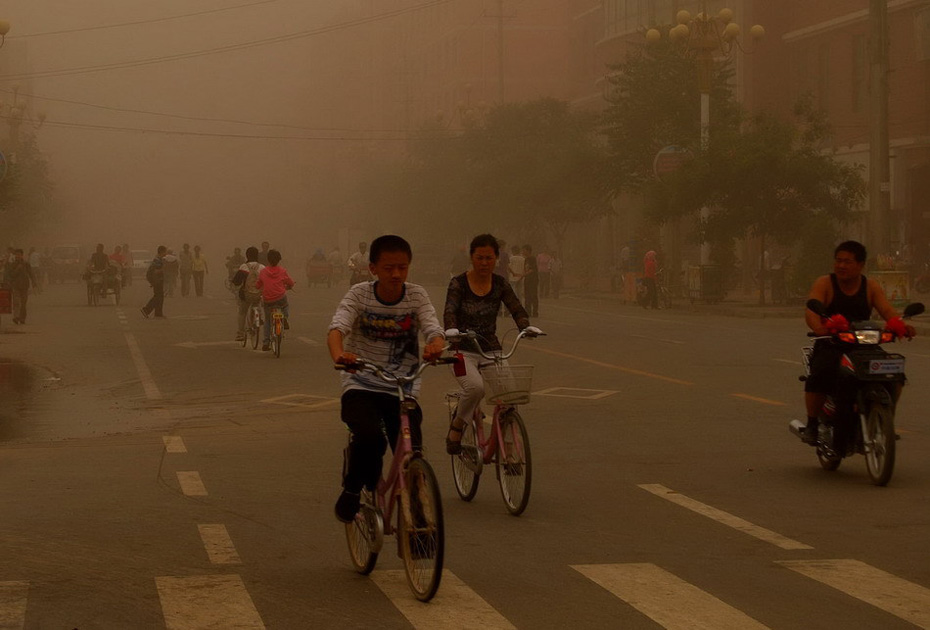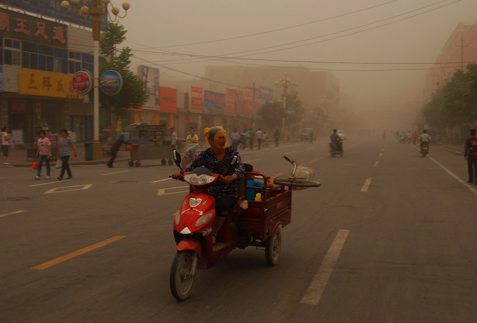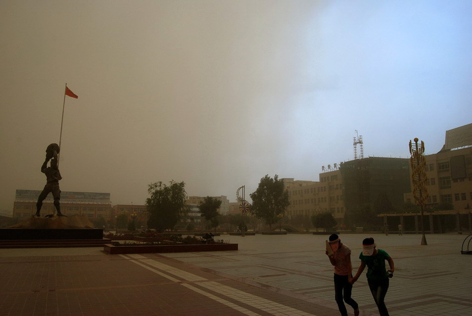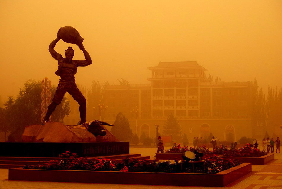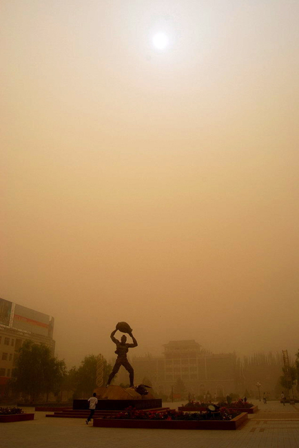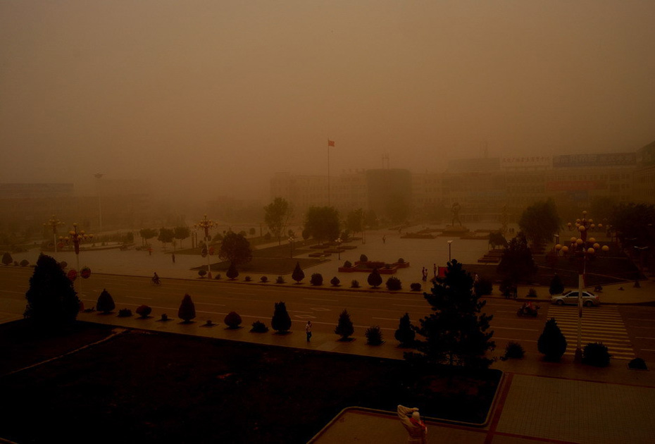 6月27日,甘肅民勤城區(qū)遭到沙塵襲擊。當(dāng)日下午4時(shí)左右,甘肅省武威市民勤縣又遭沙塵暴襲擊,黃黑的沙塵迅速籠罩整個(gè)縣城,能見度大幅降低。今年4月24日甘肅民勤曾遭特大沙塵暴襲擊。 圖片來源:新華網(wǎng) 李軍 攝