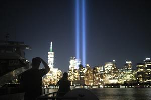 雙子塔光柱點亮紐約夜空