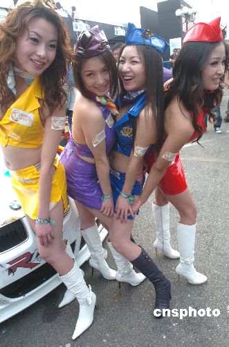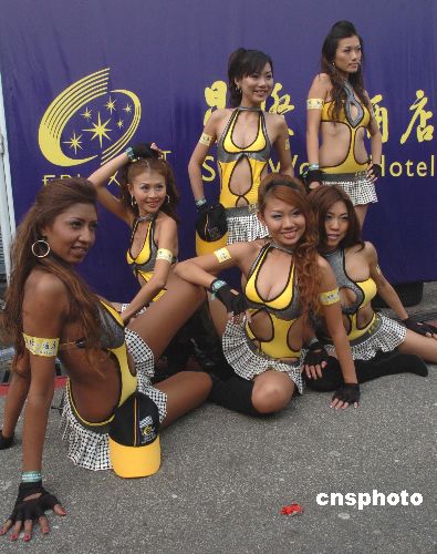十一月十八日,幾位美女在第五十四屆澳門(mén)格蘭披治大賽車(chē)上亮相。性感的服飾。苗條的身材,動(dòng)人的眼神,爭(zhēng)艷斗麗,各領(lǐng)風(fēng)騷。中新社發(fā) 史利 攝