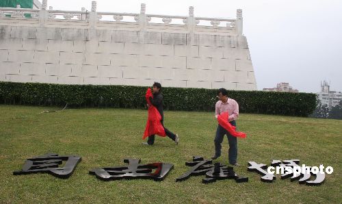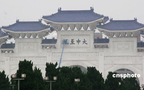 十二月七日上午,臺北中正紀念堂前牌坊上的“大中至正”牌匾被拆除,將換成“自由廣場”四字,同時“中正紀念堂”也將改為“臺灣民主紀念館”。中新社發(fā) 陳國華 攝