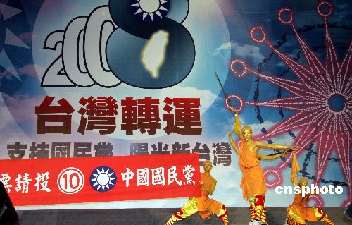 1月11日晚,中國國民黨在臺北縣三重市綜合運動場舉辦的“2008臺灣轉運之夜”臺北選前之夜活動,為國民黨參加本屆“立委”選舉作最后沖刺。中新社發 孫自法 攝