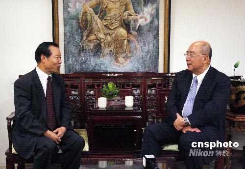 7月8日,海峽兩岸關(guān)系協(xié)會(huì)副會(huì)長王在希在臺(tái)北與中國國民黨主席吳伯雄會(huì)見。吳伯雄表示,7月4日開始的兩岸周末包機(jī)以及大陸居民赴臺(tái)旅游,都很重要。希望彼此的交流有助于促進(jìn)兩岸的了解和友誼。中新社發(fā) 黃少華 攝