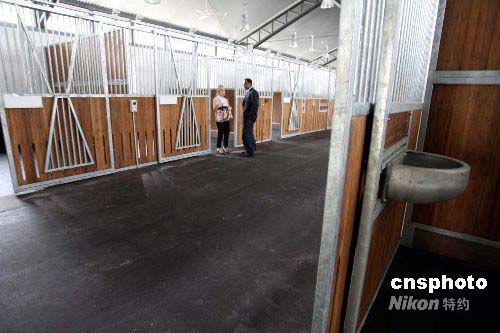 七月二十二日,香港奧運(yùn)馬術(shù)公司行政總裁林煥光指出,周六會(huì)有第一匹參賽馬,及二百四十名運(yùn)動(dòng)員到港。圖為奧馬沙田賽場(chǎng)內(nèi)的新馬廄已準(zhǔn)備就緒。中新社發(fā) 洪少葵 攝