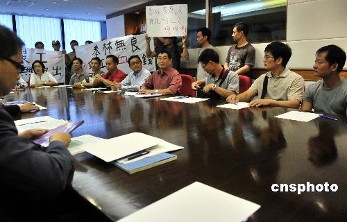 十月二十一日,香港二十多名泰林電器的外判技工,早上與特區政府勞工處長謝凌潔貞會面,希望追討欠薪及工程費,估計涉款一百五十萬港元。中新社發 譚達明 攝