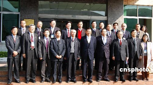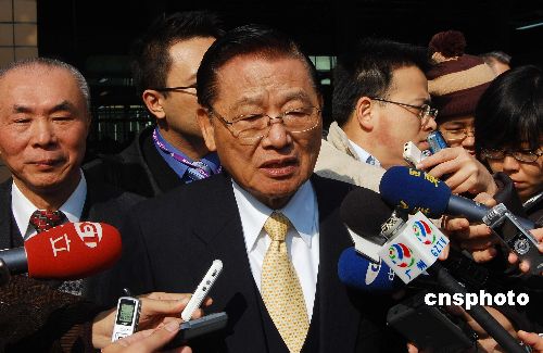 一月九日上午,海協(xié)會(huì)與海基會(huì)聯(lián)合參訪團(tuán)在廣州考察一家臺(tái)資企業(yè)。考察結(jié)束后,臺(tái)灣海基會(huì)董事長(zhǎng)江丙坤接受兩岸記者聯(lián)合采訪。中新社發(fā) 柯小軍 攝