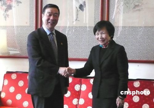 北京故宮博物院院長(zhǎng)鄭欣淼(左)三月一日率領(lǐng)十人訪問(wèn)團(tuán)抵達(dá)臺(tái)北,展開(kāi)對(duì)臺(tái)北故宮為期四天的回訪。圖為鄭欣淼與臺(tái)北故宮博物院院長(zhǎng)周功鑫(右)在記者會(huì)上。兩人都表示:兩岸故宮合作能擷長(zhǎng)補(bǔ)短、互惠互補(bǔ),一加一的效果將遠(yuǎn)大于二。中新社發(fā) 路梅 攝