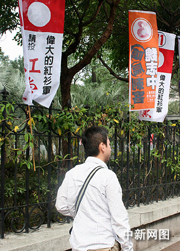 一月十日,距臺灣第七屆“立委”選舉只有兩天。雖然單一選區兩票制的新制對小黨很不利。但小黨也是不甘示弱的。你大黨在街頭插旗搞文宣,我紅黨雖小也要插旗。作者:陳立宇