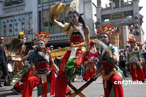 4月6日,臺南媽祖出游祭拜活動場面熱鬧。大天后宮俗稱臺南媽祖廟,建于清康熙23年(公元1684年),原為明寧靖王府邸,是鄭成功之子鄭經(jīng)為了表示對寧靖王朱由桂禮遇而建。后清將施瑯在寧靖王府內(nèi)供奉媽祖并改為天后宮進(jìn)行擴(kuò)建。大天后宮歷經(jīng)數(shù)次整修,1985年以其歷史與文化地位被列為一級古跡,在臺灣將近400座媽祖廟中,具有尊貴地位,是島內(nèi)第一座官建媽祖廟,也是唯一列入官方春秋祭典的媽祖廟。中新社發(fā) 杜洋 攝