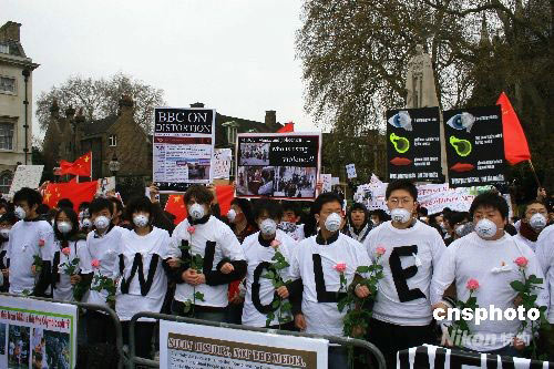 當地時間19日,在英國學習、工作和定居的華人約2000多人在倫敦舉行靜默集會,抗議包括英國廣播公司(BBC)在內的西方媒體對中國所做的不公正的、片面的報道。圖為在英國議會大廈對面舉行的靜默集會現場。 中新社發 李鵬 攝