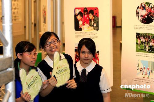 圖為香港學生觀摩奧運圖片展覽。 中新社發 王麗南 攝