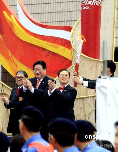 特區行政長官曾蔭權、中聯辦主任高祀仁、香港奧委會會長霍震霆等出席在尖沙咀火炬傳遞起跑地舉行的圣火傳遞儀式。