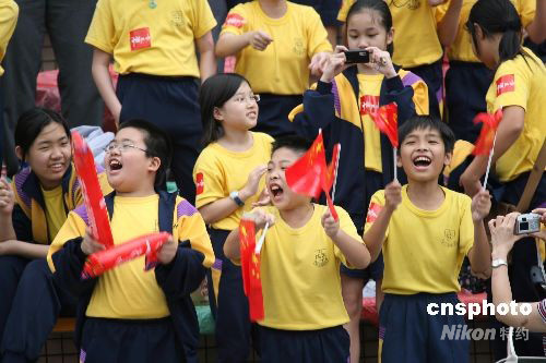圖為在沙田馬場出席“萬眾歡騰迎圣火”大型社區慶祝活動的小朋友們。中新社發 武仲林 攝