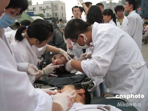 圖:四川地震 100多名地震傷員在成都接受搶救(3)