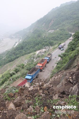 四川汶川地震多處塌方 通往汶川交通中斷(3)