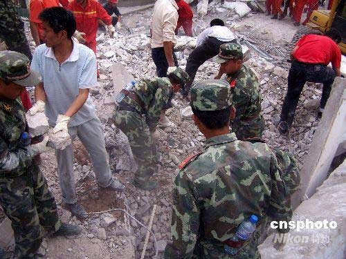 圖:重慶武警成功搜救坍塌小學11名師生(3)