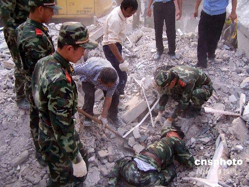 圖:重慶武警成功搜救坍塌小學11名師生(4)
