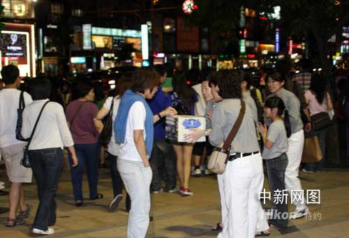 十七日晚,慈濟臺北分會的義工在臺北市的街上為四川震災與緬甸風災募款,兒童也加入行列。作 者:陳立宇
