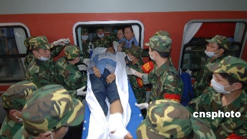 組圖:地震災(zāi)區(qū)首趟運(yùn)送傷員專(zhuān)列順利抵達(dá)重慶