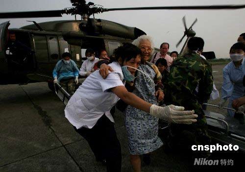 5月16日下午,二十六名境外游客游客從汶川大地震被稱為“孤島”的茂縣登上救援的中國空軍黑鷹直升機(jī),平安撤到四川省會成都。中新社發(fā) 賈國榮 攝