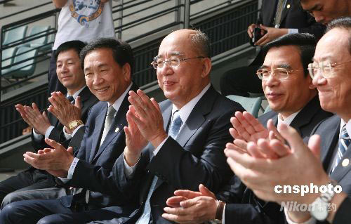 圖為中國國民黨主席吳伯雄一行前往五棵松棒球場進(jìn)行參觀。中新社發(fā) 廖文靜 攝