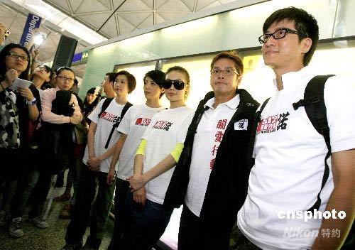 譚詠麟為啟程赴四川地震災區探望的香港藝人送行