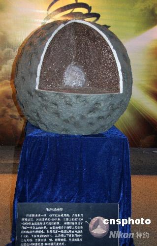 5月30日下午,以“奔月交響曲”為主題的“月球探測科普展”在中國科學技術館開幕,展覽為期兩個月,向公眾免費開放。圖為展出的月球構造模型。中新社發 孫自法 攝