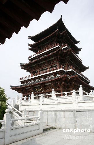 六月五日,四川江油李白故里的太白樓被地震震成危樓。“5·12”汶川大地震后,李白故居房屋全部拉裂,部分垮塌。新建的三層仿唐建筑太白樓的數十根鋼筋混凝土立柱也斷裂、錯位,已成危樓。中新社發 慎重 攝