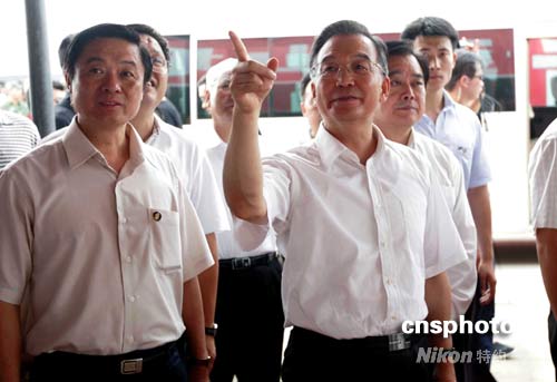 6月6日,中國國務院總理溫家寶到四川綿陽涪城區居民疏散安置點視察慰問。中新社發 杜洋 攝
