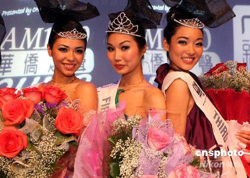 6月5日晚,在加拿大溫哥華舉行的“河石娛樂度假酒店新絲路北美模特大賽”進行總決賽,選自加拿大各城市及其他國家和地區的20位華裔模特選手參加大賽角逐。該賽由中國新絲路模特機構和加拿大ITM國際頂級模特公司主辦,并由加拿大匯聲廣播華僑之聲承辦。本次大賽的全部門票收入將由AM1320地震賑災基金會捐獻給中國四川地震災區。圖為來自溫哥華市的的選手GRNCE SOHEE BAAK獲得冠軍,來自素里市的AZAR B MASSAHIAHI獲得亞軍(左),來自溫哥華市市的選手CHINK ENICA SHIMIZU獲得季軍(右)。中新社發 錢興強 攝