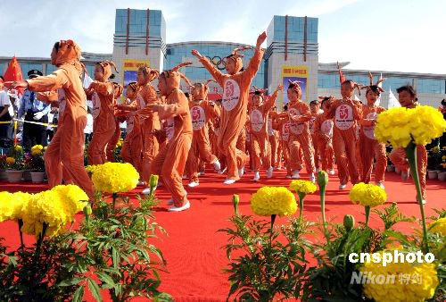 圖:格爾木孩童扮成藏羚羊歡慶奧運圣火傳遞