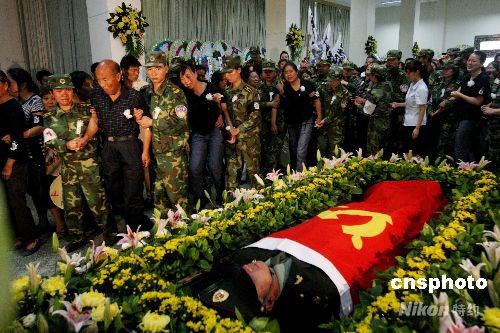 6月24日,被濟南軍區某集團軍評為革命烈士并被追記一等功的濟南軍區某紅軍師士官武文斌烈士的遺體在四川都江堰市殯儀館火化。上午9時在都江堰市殯儀館舉行了隆重的向武文斌烈士遺體告別儀式,武文斌生前所在部隊的官兵和社會各界的近萬人參加了向遺體告別儀式。中新社發 曾憲平 攝