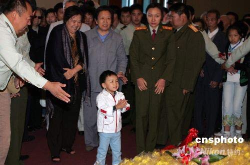 資料圖為2006年9月9日毛澤東逝世三十周年紀念日。毛澤東的親屬匯聚毛主席紀念堂敬獻鮮花。邵華、毛新宇及妻子劉濱帶著毛澤東三歲的重孫毛東東向太爺爺獻花。中新社發 任晨鳴 攝