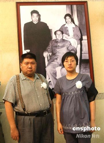 圖:毛新宇和妻子劉濱為母親邵華布置靈堂
