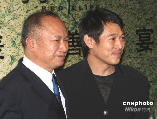 7月1日晚,電影《赤壁》劇組和瑞士某品牌名表在北京舉辦慈善晚宴,將募集的100萬元人民幣善款捐贈中國紅十字會李連杰壹基金計劃,用于四川地震災后重建。導演吳宇森(左)和李連杰出席慈善晚宴。中新社發 趙振清 攝