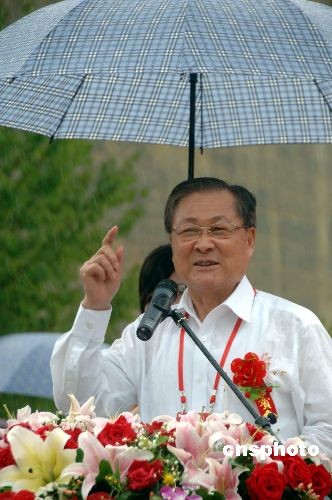 在中國福建(永定)土樓客家文化節和龍巖市第六屆旅游節開幕之際,應邀出席致辭的中國國民黨中評會饒穎奇主席在開幕式上宣讀中國國民黨主席吳伯雄的賀信。中新社發 鄭祚聲 攝