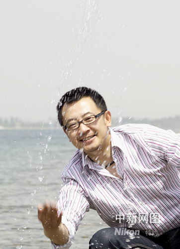 在北京奧運即將開幕之際,中新社特別推出大型系列專題片《明星帶你看賽場》,節目將真實直觀的呈現北京奧運重要比賽場館,并由眾多明星帶大家體驗場館的各項功能,包括入場程序,觀賽須知,建筑特色等。圖為影視紅星黃海波體驗清新的奧林匹克水上公園。
