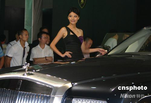 第11屆成都國際車展向媒體開放,一美女車模著“稻草”裝現身。 中新社發 霍潺 攝