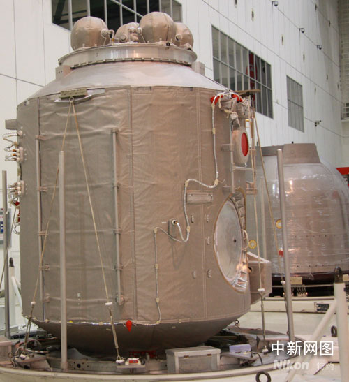 中國神舟七號載人航天飛船發射在即。圖為即將空運至酒泉衛星發射中心的神舟七號飛船軌道艙與返回艙(資料圖片)。左賽春 攝