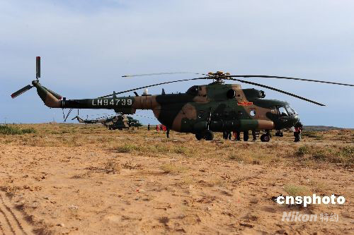 圖為擔(dān)負空中搜救任務(wù)的陸航直升機在主著陸場區(qū)待命。中新社發(fā) 周敬波 攝