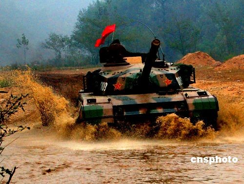 10月21日,豫南桐柏山麓陰雨蒙蒙,“前鋒-二00八”迎外演習(xí)各參演部隊(duì)頂住不良天候的影響,在溝壑、河流、樹(shù)林交織的復(fù)雜地域展開(kāi)了聯(lián)合一體化訓(xùn)練。這是一場(chǎng)以聯(lián)合作戰(zhàn)為背景的一體化協(xié)同“戰(zhàn)斗”,著重體現(xiàn)以信息化為主導(dǎo)的火力戰(zhàn),真正實(shí)現(xiàn)“信息與火力聚合”、“發(fā)現(xiàn)即摧毀”的作戰(zhàn)效果;著重體現(xiàn)陸軍訓(xùn)練改革的成果,真正把指揮聯(lián)動(dòng)、要素融合、營(yíng)級(jí)合同戰(zhàn)術(shù)等新的訓(xùn)練內(nèi)容貫穿演練全程。中新社發(fā) 張振興 攝