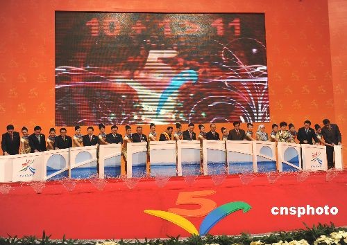 圖:王岐山、洪森為中國(guó)—東盟博覽會(huì)開(kāi)幕式剪彩