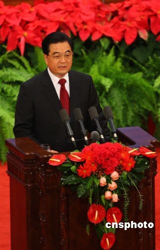 中國國家主席胡錦濤在開幕式上致辭。中新社發 廖文靜 攝