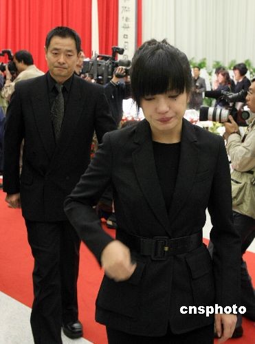 影視明星趙薇(前)以及濮存昕到場送別一代電影大師。中新社發 湯彥俊 攝